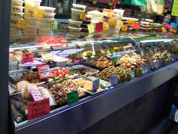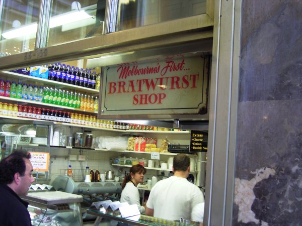 Das ist die "Delikatessenhalle" des Queen Victoria Markets. Hier sieht es aus wie am Anfang des 20ten Jahrhunderts. Alles voll mit Tante Emma Läden. Es gibt hauptsächlich Käse, Wurst und Pralinen. Zu beachten ist besonders das Schild auf Bild 4.