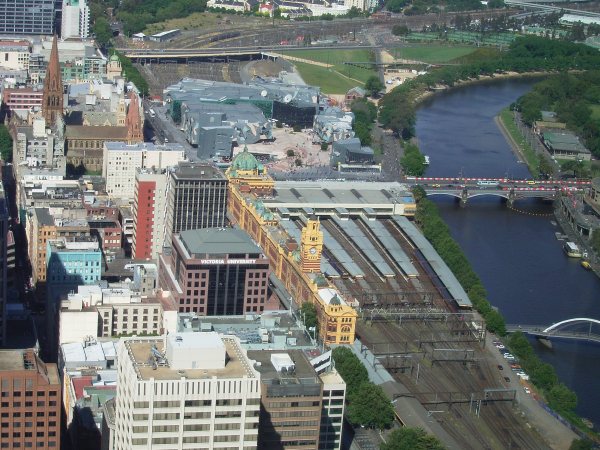 Das lange gelbe ist mit das bekannteste Gebäude von Melbourne. Die "Flinders Street Station".