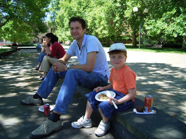 Dennis und ich. Mit dem musste ich so viel Frisbee spielen, dass ich heute einen Muskelkater in den Beinen habe. Dennis ist übrigens der Sohn von Tanja.
